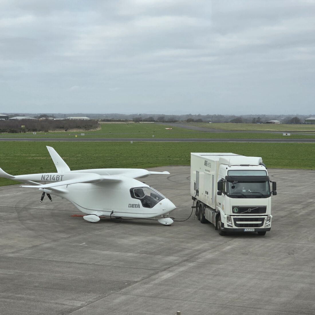 The aircraft arrived from Leeds East Airport and made a scheduled stop to recharge before continuing its journey to Glasgow. As electric aviation infrastructure is still developing across Europe, the aircraft is supported by a dedicated lorry equipped with a mobile power supply, ensuring it can operate even at airports without permanent charging facilities.